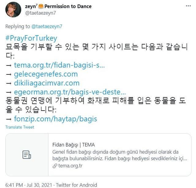 ’Dikili ağacım var’ sitesinden yayımlanan bağışçı listesinde Koreliler bir anda üst sıralara çıktı. Sosyal medya kullanıcıları, ’Kim Yeon-Kyung adına fidan bağışlamaya ne dersiniz? Bence harika bir fikir’, ’Beş tane fidan bağışladım bile’ ’Türkiye’de yangın çıktığını voleybol maçı izlerken öğrendim’ gibi mesajlar yayımladılar.