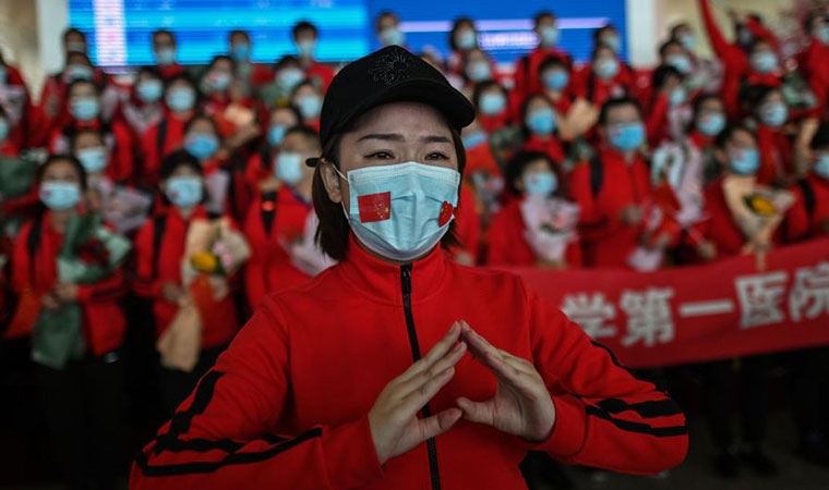 Hankou Tren İstasyonu'na giren yolcuların vücut sıcaklıkları, ısı ölçer kameralarla kontrol ediliyor.Hankou Tren İstasyonu'nun önünde bekleyen bazı yolcular tüm vücutlarını koruyucu kıyafetler giyerken, bazıları sadece yüz maskesi taktı.Vuhan'daki fabrikalar da salgın öncesi üretim kapasitelerine dönmeye başladı. Onlardan biri Dongfeng Honda Fabrikası.Vuhan'daki Dongfeng Honda'da öğle arasında yemek yiyen işçiler.Bu fotoğraf ise Honda fabrikasında üretimin yeniden başladığı günlerde, 23 Mart'ta öğle arası sırasında çekilmişti. Ocak ayı sonunda kapanan fabrika 11 Mart'tan itibaren kademeli olarak çalışmaya başlamıştı.Vuhan'daki Vanda inşaat bölgesinde çalışan göçmen işçilere ise mesai öncesi koronavirüs testi yapılıyor.