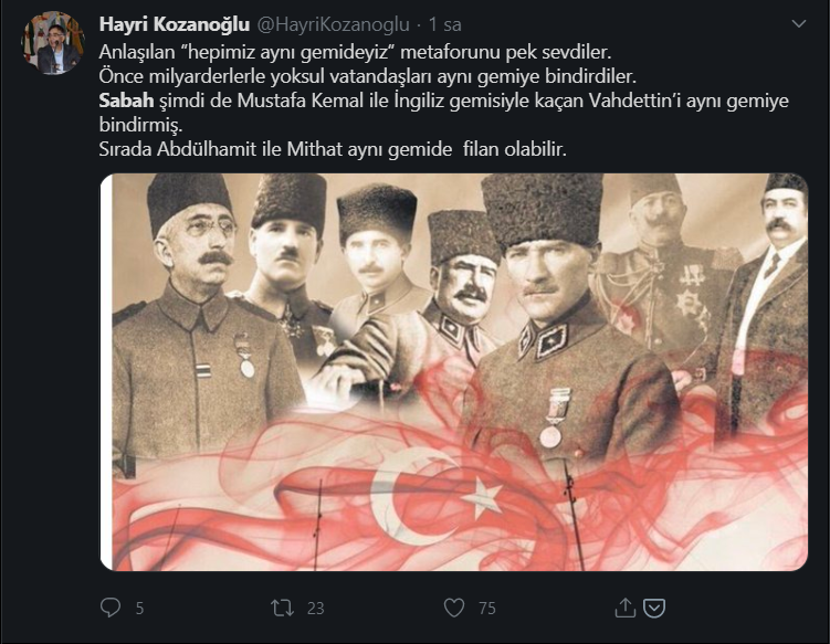 Sabah gazetesinin Damat Ferit ve Padişah Vahdettin’li afişine sosyal medyadan da tepkiler geldi.