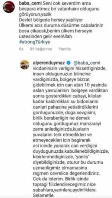 Duymaz'ın paylaşımının altına bir kullanıcı, "Seni çok severdim ama beş para etmez bir vatan haini olduğunu görüyorum, yazık devlet bölgede her şeyi yapıyor. Ülkemi aciz duruma düşürme çabalarınız boşa çıkacak" yorumunda bulundu.