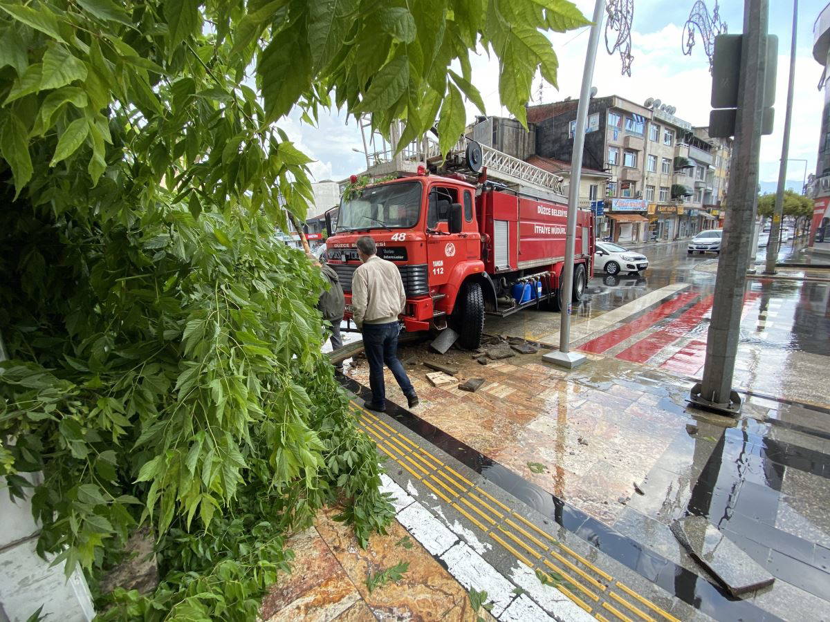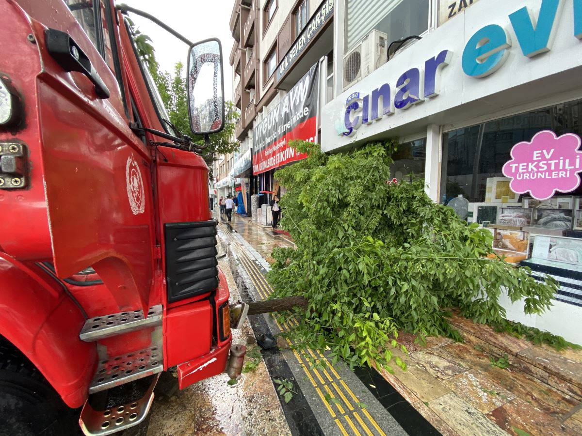 Devrilen ağaç bir dükkanın camına isabet etti. Kazayı gören vatandaşlar hemen kazazedelerin yardımına koştu. Her iki araçta da yaralanan olmadı.