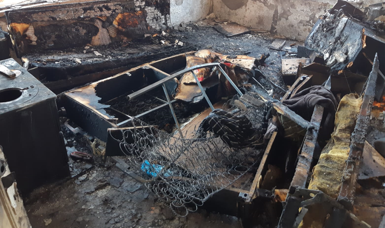 İtfaiye ekipleri, ev içerisinde yaptıkları aramada yanmış bir erkek cesedi ile buldu.