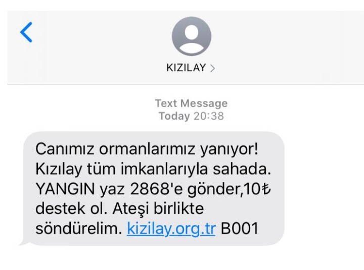 Kızılay tarafından gönderilen mesajda, vatandaşlardan 10 TL istenerek, sahada bulunduğu ifade edilen Kızılay ekiplerine destek olunması istendi.