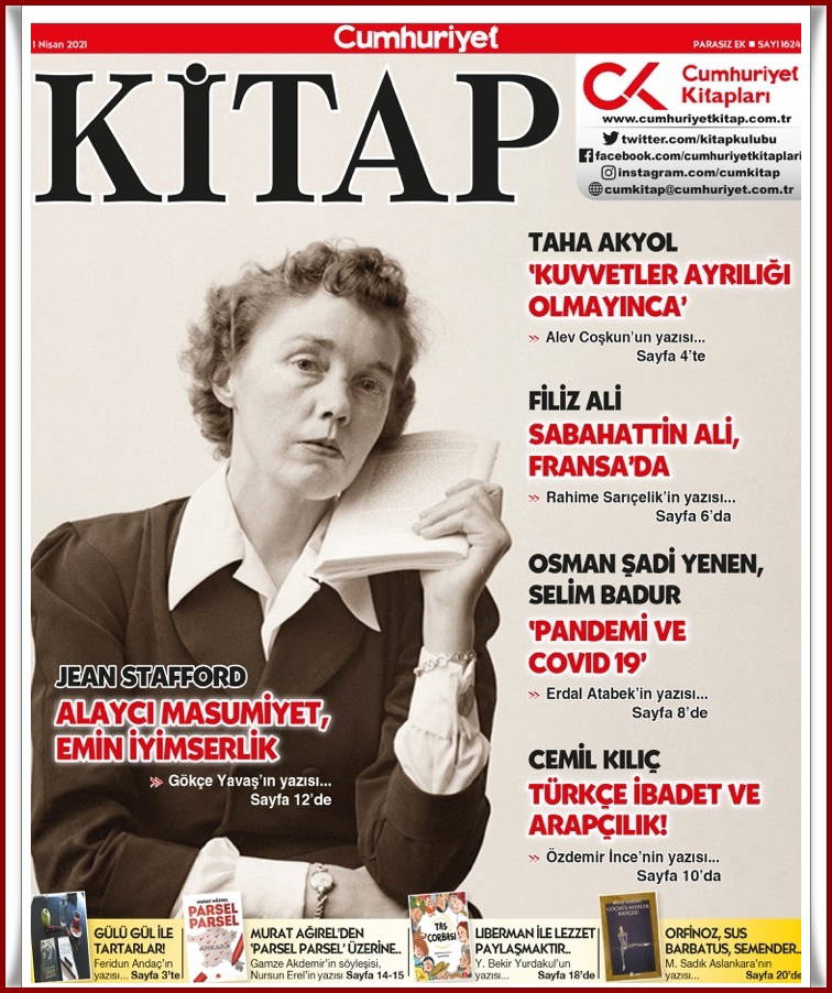- Sayı 1623! BUGÜN yayınlanan 1623’üncü sayımızın kapağında; ülkemizde kısa süre önce iki cilt olarak yayımlanan Toplu Öyküler’iyle (Delidolu Yayınları); 1940 ve 1950’lerde Amerikan edebiyat dünyasında, hem 1970’te Pulitzer Ödülü’ne değer görüldüğü öyküleri hem romanları hem de özel yaşamıyla isminden çokça söz ettirmiş bir yazar, Jean Stafford yer alıyor. Gökçe Yavaş’ın yazısı...