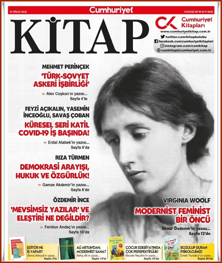 - Sayı 1626! BUGÜN yayınlanan 1626’ıncı sayımızın kapağında; yaşamı ve yazınında Feminizmi savunması ve Modernist bir yazar olmasıyla öne çıkmış; yetkin bilinçakışı yöntemini kullanarak İngiliz romanına cüretkâr, yeni bir ses getirmiş, onu Viktorya döneminin denenmiş ve sınanmış anlatım yapılarının ötesine itip taze, deneysel, yeni bir alana taşımış öncü İngiliz yazar Virginia Woolf yer alıyor. Woolf’un yapıtlarının neredeyse tümünü dilimize çevirmiş İlknur Özdemir, bu öncü yazarı Cumhuriyet Kitap okurları için kaleme aldı.