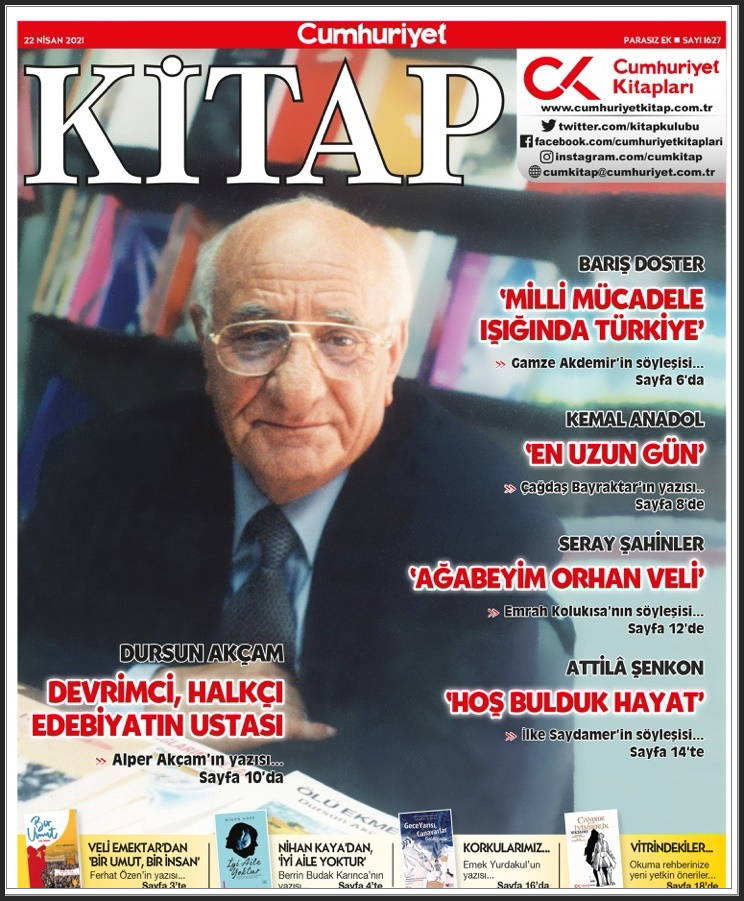 - Bu sayımızın kapağında, yaşamı ve usta yapıtlarıyla bugün de özgürlük ve insanca yaşam kavgamıza ışık tutan; yoksul köylülükten köy öğretmenliğine, sendikal mücadeleye, gazeteciliğe ve edebiyat alanına uzanmış; evrensel olarak adını duyurmayı başarmış ve tüm yapıtları Literatür Yayınevi’nce bir kez daha yayımlanan Dursun Akçam yer alıyor. Alper Akçam’ın yazısı...