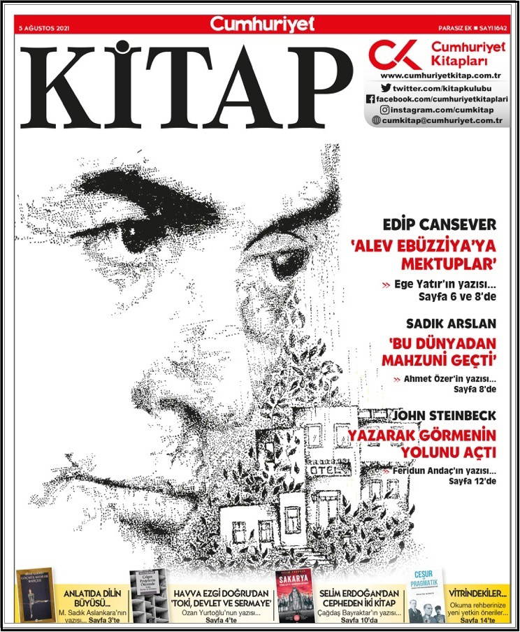 - Cumhuriyet Kitap Dergi’nin BUGÜN yayınlanan 1642. sayısının kapağında, modern seramik alanının dünyaca ünlü sanatçılarından Alev Ebüzziya’ya, 1962 ile 1976 yılı arasında yazdığı 123 mektubun Habil Sağlam tarafından ilk kez bir araya getirildiği, hiçbir yerde yayımlanmamış İki Satır, İki Satırdır (Yapı Kredi Yayınları) ile ölümsüz şair Edip Cansever yer alıyor. Ege Yatır’ın yazısı...