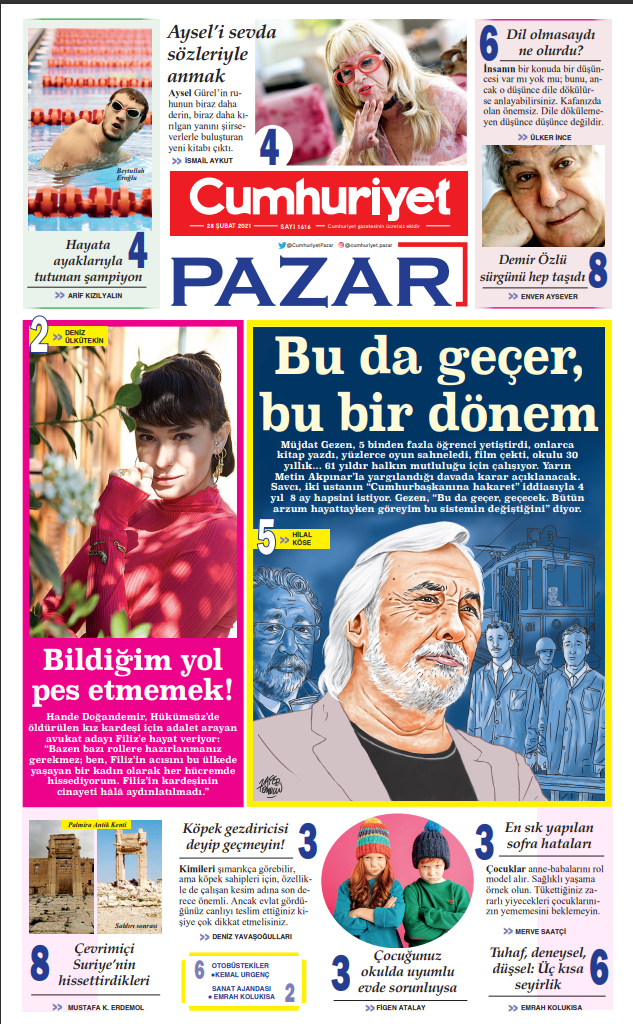 Usta tiyatrocular Müjdat Gezen ve Metin Akpınar’ın yargılandığı davada pazartesi günü karar çıkması bekleniyor. Duruşma öncesi Cumhuriyet Pazar’a konuşan Müjdat Gezen, “Bu bir devir, bu da geçer… 78 yaşına gelmişim, 80 küsür yaşında hapisten çıkacağım. Buna hiç kimsenin de gücü yetmez onu da söyleyeyim” diyor.