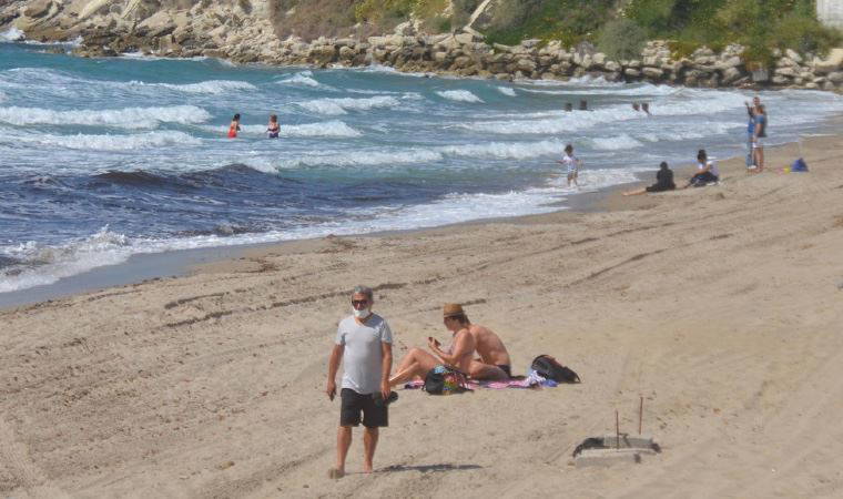 Aydın'ın Kuşadası ilçesinde dünyaca ünlü Kadınlar Denizi Plajı'nda bazı vatandaşlar yasağa rağmen denize girdi.