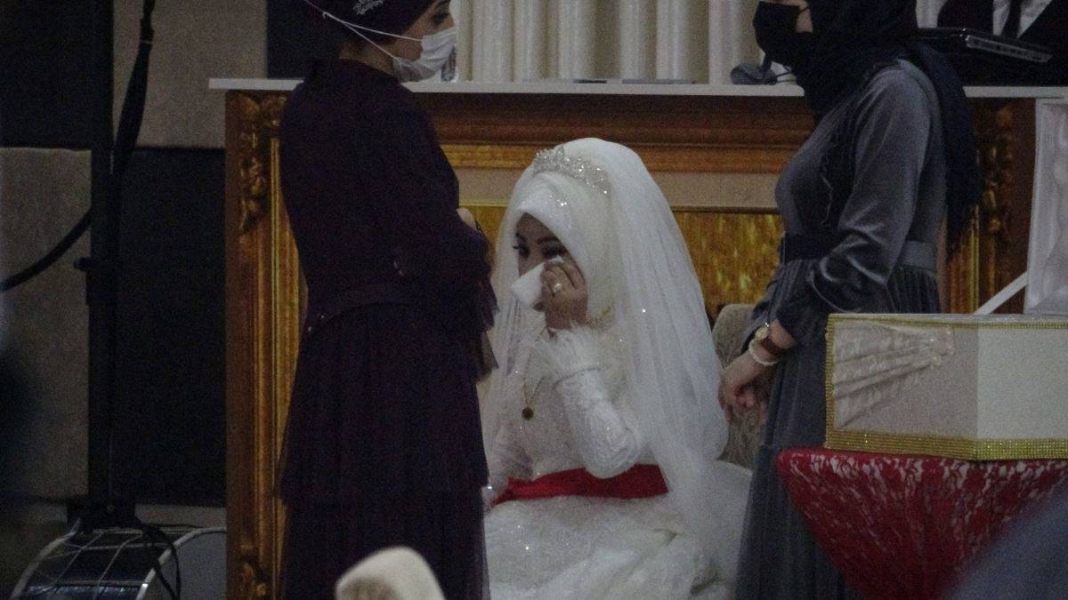 Baskın sırasında gelin ise gözyaşlarına boğuldu. Dakikalarca gözyaşı döken gelini arkadaşları teselli etti.