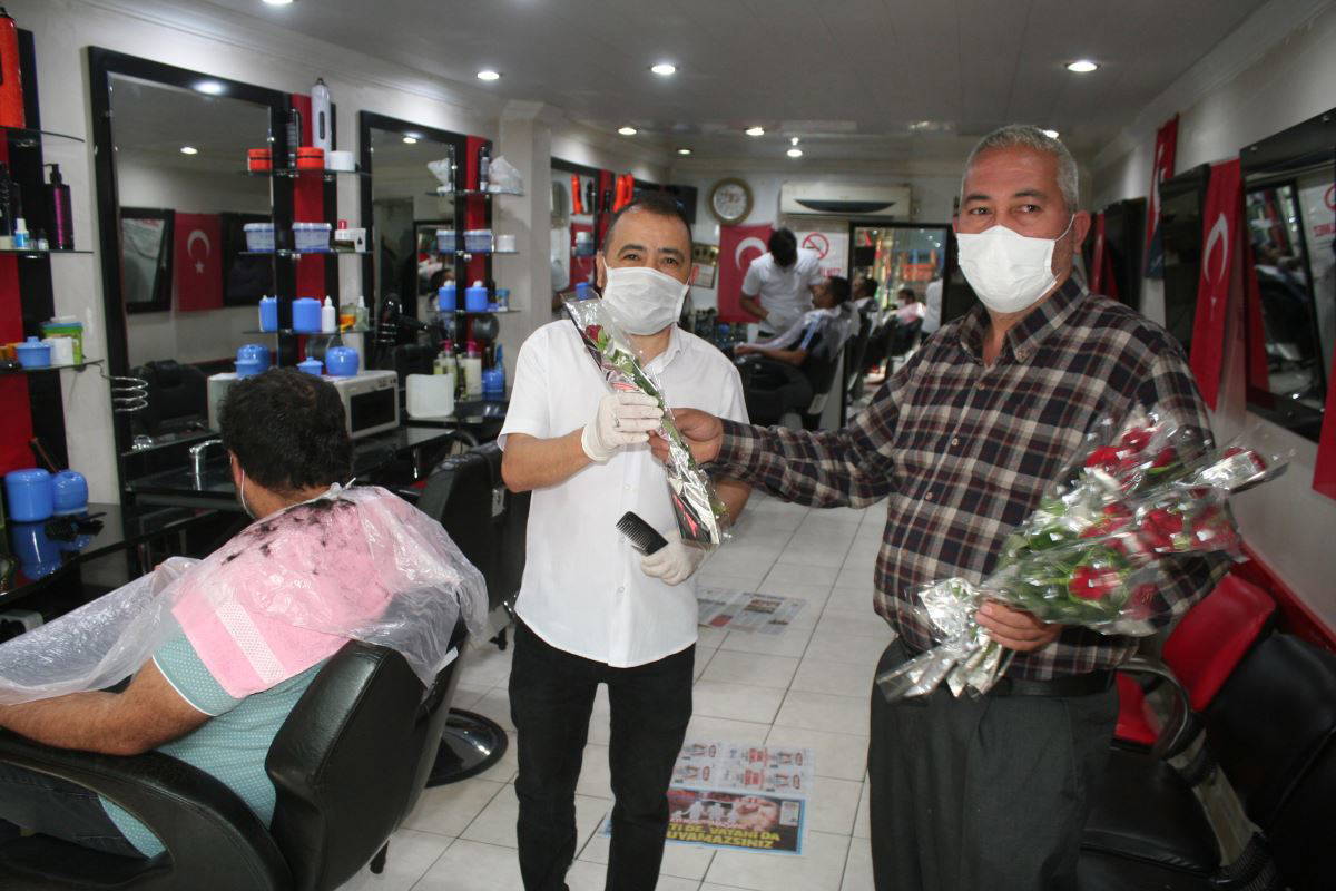 MERSİN'DE KUAFÖRLER, GÜLLERLE KARŞILANDI