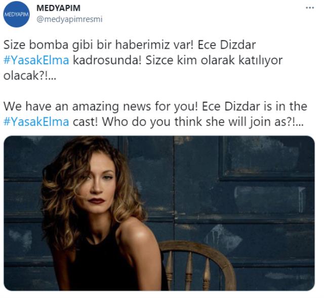Cavadzade'nin yerine ise yeni bir oyuncu getirildi. Medyapım, güzel oyuncu Ece Dizdar'ın Yasak Elma dizisinin kadrosuna dahil olduğunu duyurdu. Ece Dizdar'ın dizide hangi karaktere hayat vereceği önümüzdeki günlerde netlik kazanacak.