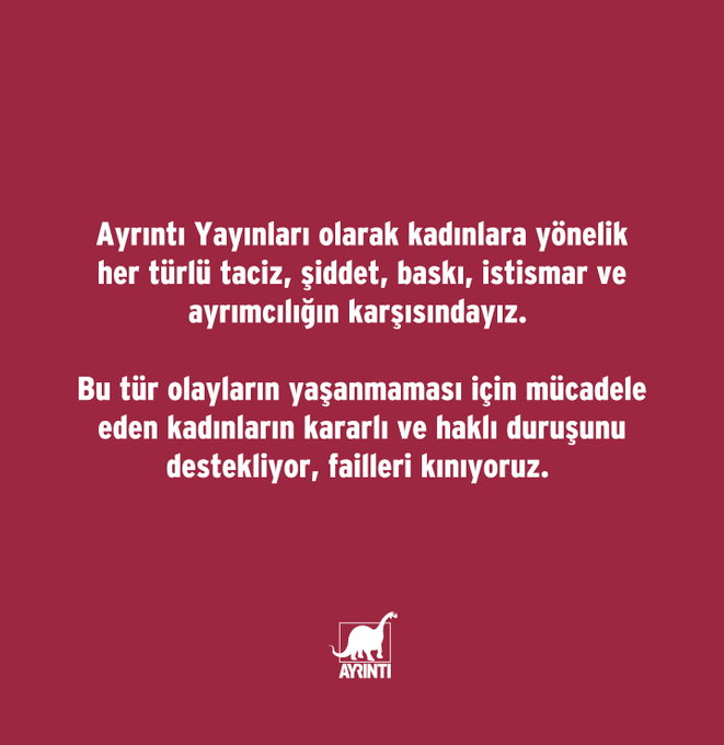 Yayınevi bu kez Toptaş ile yollarını ayırdıklarını belirterek, "Yazar Hasan Ali Toptaş ile yollarımızı ayırmış bulunuyoruz. Her türlü tacizin karşısındayız, karşısında olmaya devam edeceğiz" dedi.