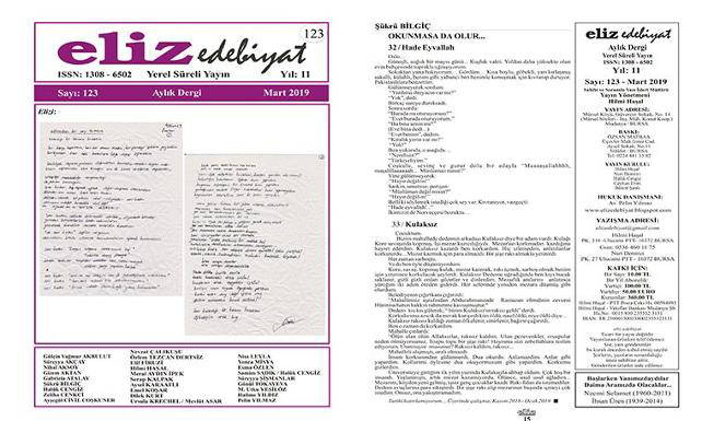 Yazanların “el izleri” değerlidir, daktilodan sonra dokunmatik ekranın yazı yüzeyi araç olarak keşfi, kalemi-mürekkebi unutturma evresini başlattığı belliydi. Biz de kapakta el yazısı “elizi” ve içinde klavye yazısı ile yayımlamaya başladık, eliz edebiyat’ı. Her sayıda farklı bir şairi onurlandırıyoruz. 120’nci sayıdan sonra, klavye şiirin yanına (ön kapak içine) fotoğraflı özgeçmiş koymaya başladık. Yılda 12 şairimizin “elizi” şiirini okurla buluşturuyoruz. Geçen zamanı belgeliyoruz bir bakıma. Gelecekte maddi olanaklar el verirse, sıralı el izlerini; “50 elizi” kitabı içinde derlemeyi düşünüyoruz. Her sayıda bir çevirmen şairin çeviri emeğine de yer veriyoruz arka kapakta. Türkçeye kazandırılmış bir yabancı dilin şiirini, şairini tanıtıyoruz.