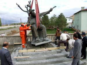 Aşık Veysel'in memleketi Şarkışla'da 2009 yılı Temmuz ayında Aşık Veysel heykeli kaldırılarak yerine ''ünlü ozana hiç benzemediği iddia edilen'' bir heykelin dikilmesi tartışmaya neden olmuştu. Konulan heykelle ilgili olarak bazı basın kuruluşlarında ''Takkeli Aşık Veysel Heykeli'' başlıklı haberlerin yer alması üzerine, Kültür ve Turizm Bakanlığı Güzel Sanatlar Genel Müdürlüğü Atatürk Kültür Merkezi'nin bahçesinde bulunan, oturur vaziyette saz çalan, fötr şapkalı Aşık Veysel heykeli Şarkışla'ya getirilerek tartışma konusu olan heykelin yerine konulmuştu.