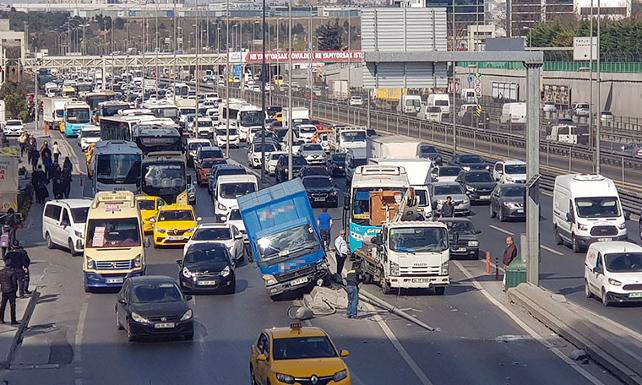 Kaza 10:20 sıralarında E-5 karayolu Yenibosna mevki’inde meydana geldi. İddiaya göre E-5 yan yolda seyir halinde bulunan bir kamyonet başka bir aracın sıkıştırması sonucu direksiyon hakimiyetini kaybederek orta refüje çıktı ve aydınlatma direğine çarptı. Çarpmanın etkisiyle direk, E-5 yan yol girişine devrilirken direğin o sırada yoldan geçen araçlara çarpmaması muhtemel bir faciayı önledi. Kazayı gören vatandaşlar durumu hemen polis ekiplerine bildirdi. Kaza sonrası olay yerine devrilen direk için ekipler sevk edilirken bazı araçlar, elektrik olma ihtimali bulunmasına rağmen devrilen direğin ve kabloların üzerinden geçti. Bu sırada E-5 kara yolu Bakırköy istikametinde trafik durma noktasına geldi.