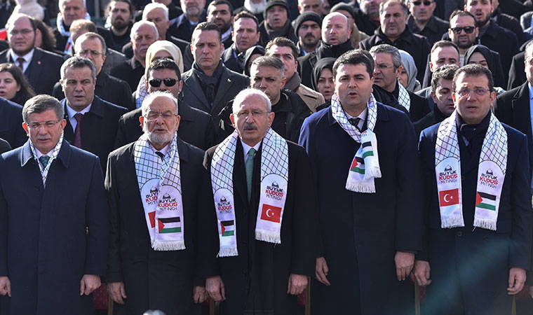 Saadet Partisi, ABD Başkanı Donald Trump'ın açıkladığı barış planına tepki göstermek amacıyla 'Büyük Kudüs Mitingi' düzenleniyor. Meydandaki mitinge katılan vatandaşlar sadece Türk Bayrağı ve Filistin Bayrağı ile alanda yer aldı. Mitinge Saadet Partisi Genel Başkanı Temel Karamollaoğlu, CHP Genel Başkanı Kemal Kılıçdaroğlu, Gelecek Partisi Genel Başkanı Ahmet Davutoğlu ve İBB Başkanı Ekrem İmamoğlu da katıldı.
