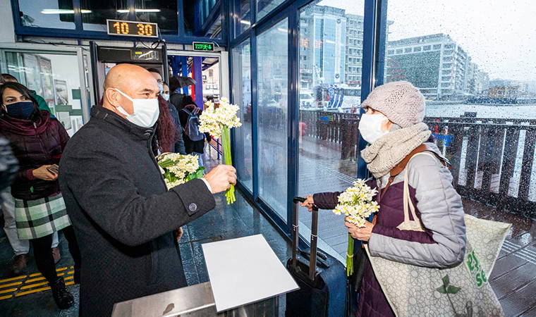İzmir Büyükşehir Belediyesi tarafından 29 Ekim'de tadilata alınan Pasaport İskelesi yeniden hizmete girdi. Yenilenen çehresiyle kullanıma açılan iskelenin ilk yolcularını İzmir Büyükşehir Belediye Başkanı Tunç Soyer, İzmir Büyükşehir Belediyesi Genel Sekreteri Dr. Buğra Gökçe, Genel Sekreter Yardımcısı Eser Atak, İZDENİZ Genel Müdürü Ümit Yılmaz karşıladı. Başkan Soyer, Prof. Dr. Aziz Sancar isimli vapurla iskeleye gelen yolculara İzmir Büyükşehir Belediyesi’nin Karaburunlu üreticilerden aldığı nergis buketlerini hediye etti. Karşılarında Başkan Soyer'i gören yolcular mutluluk ve şaşkınlığı bir arada yaşadı.