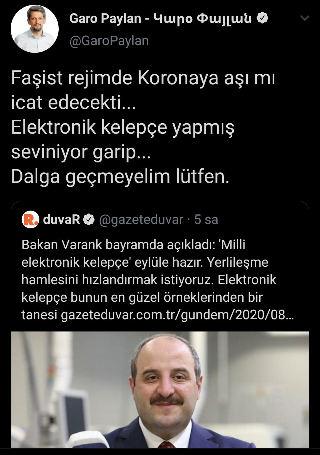 HDP Diyarbakır Milletvekili Garo Paylan ise, "Faşist düzende koronavirüse aşı mı icat edecekti.... Elektronik kelepçe yapmış, seviniyor. Dalga geçmeyin lütfen" sözleriyle tepki gösterdi.