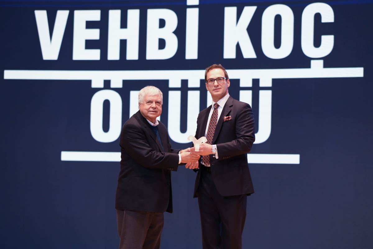 Prof. İlhan Tekeli Vehbi Koç Ödülünü Vakfı Başkanı Ömer Koç’un elinden aldı.