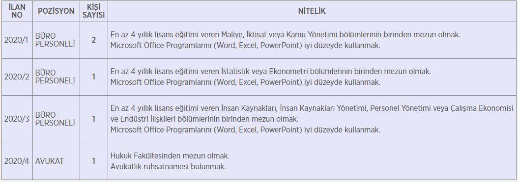 Esaslar” ın “Sınav Şartı” başlıklı ek 2 inci maddesinin (b) bendine göre 2018 KPSS (B) gurubu puan sıralaması esas alınmak kaydıyla aşağıda belirtilen pozisyon ve niteliklerde 5 (beş) sözleşmeli personel alınacaktır