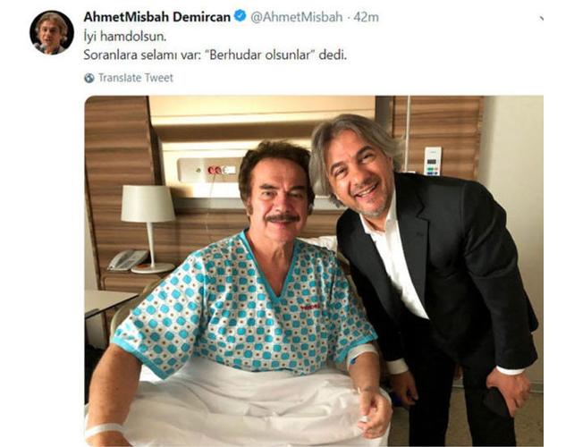 Ünlü sanatçıyı hastane odasında ziyaret eden Beyoğlu Belediyesi eski başkanı Ahmet Misbah Demircan, sosyal medya hesabından bu fotoğrafı paylaştı.