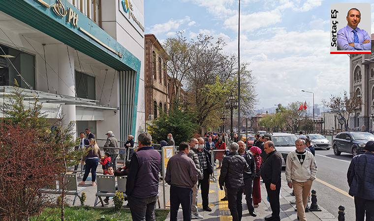 PTT Ulus Şubesi, önüne gittiğimiz gün henüz kapatılmamıştı. Burada sıra daha uzun ve mesafeye dikkat edilmiyor. Güvenlik görevlilerinin sürekli uyarıları kısa sürede unutuluyor. SSK emeklisi bir yurttaş, cep telefonuna mesaj geldiğini ve “1000 TL’lik yardımı” almaya geldiğini söylüyor. Adını vermek istemeyen bir kadın, “Eşim hamal. İki çocuğum var, kapıcı dairesinde oturuyoruz. Sigortamız yok” diyor. Tam bu sıra maskeli bir görevli, “Mesaj gelmeyenler boşuna beklemesin” uyarısı yapıyor. “Mesaj geldi mi” diye soruyorum, “Yok gelmedi. Ama bir umut bekliyorum, belki bana da verirler” diyor. “Evde kalıyor musunuz” diye sorunca da “Çocuklarla ben kalıyorum, kocam belki bir iş bulurum umuduyla sabah çıkıyor. Ama her yer kapalı” diye yanıt veriyor. Yoksullukta bile eşitsizlik anında göze çarpıyor. SSK emeklisine 1000 TL, işsiz-güvencesiz hamala bir şey yok. Yalnızca belediyeden yardım alıyorlarmış. “Bu insanlardan başka kimsenin haberi yok mu” sorusu aklımızdan çıkmıyor.