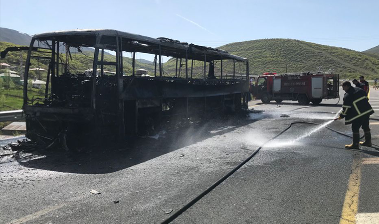 Bingöl’den çok sayıda itfaiye ekibi ve güvenlik güçlerinin sevk edildiği yangında otobüs söndürüldü, ancak kullanılamaz hale geldi.