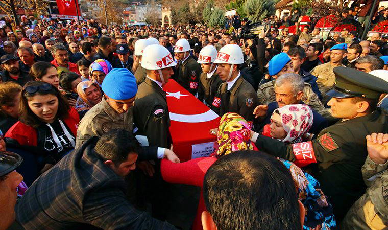 Şehit askerlerden beşinin naaşları, Hatay Devlet Hastanesi’ndeki törenin ardından dün son yolculuklarına uğurlanmak üzere memleketlerine gönderildi. Uzman Onbaşı Ahmet Alpaslan, Uzman Onbaşı Recep Bekir, Uzman Onbaşı Ali Taşöz, Er Cuma Bağatur ile Uzman Çavuş Halil İbrahim Akkaya için Hatay Devlet Hastanesi’nde tören düzenlendi. Törene Bakan Akar ve kuvvet komutanları katıldı. Diyanet İşleri Başkanı Ali Erbaş’ın okuduğu dua sonrası şehitlerin naaşları, askerlerin omuzlarında ambulanslara alınarak son yolculuklarına uğurlanmak üzere memleketlerine gönderildi.