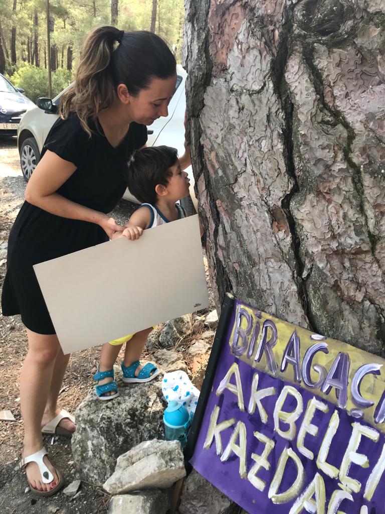 Nöbet tutulan çadır bölgesinde her yaştan eylemci var. 4 yaşındaki Sonat isimli bir çocuk, çadırda kalanlara destek verdi. Annesi ile asırlık kızılçam ağacının önünde nöbet tutan Sonat, “Geleceğim için bana nefes ve yaşam armağan eden ağaçların bayramını kutluyorum” diyerek ağacı öptü.