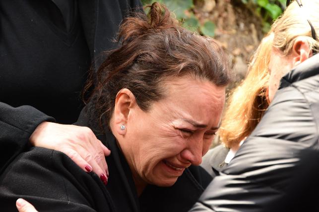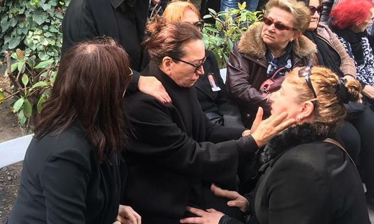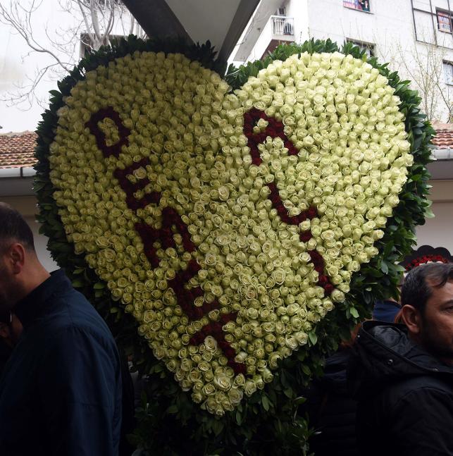 Demet Akbağ ve oğlu Ali Çika'nın kalp şeklinde yaptırdığı çelenk, tabutun başına konuldu.