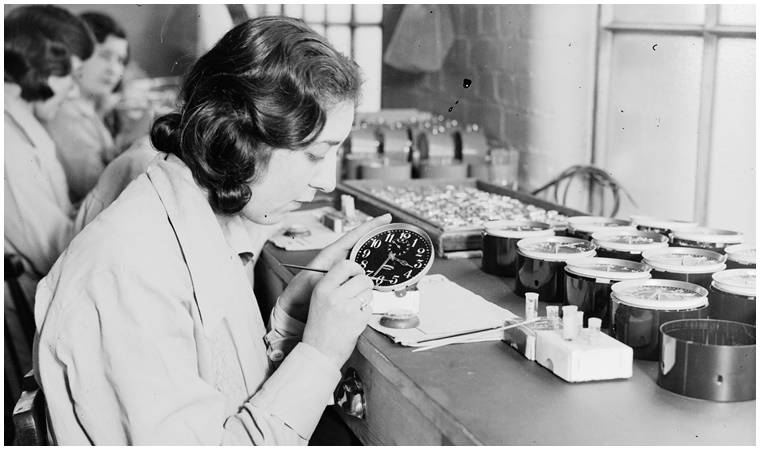 1900’lü yılların başında ABD’deki çeşitli fabrikalarda, karanlıkta parlayan saatlerin imalatına başlandı. Bunun başlıca sebebi cephedeki askerlerin geceleri de saatlerini bir ışık kaynağı kullanmadan ve düşmana görünmeden görebilecek olmasıydı. Bu saatlerin kadranlarına parlaklık veren boya radyum içeriyordu ve bunun sonucunda, saat boyama işinde çalışan fabrika işçilerinin birçoğu radyasyon zehirlenmesine maruz kaldı. Kimisi çalıştıkları kurumlara dava açsa da birçok kadın işçi hayatını çok büyük acılar çekerek kaybetti. İşte bu işçi kadınlar tarihe “radyum kızları” olarak geçti.