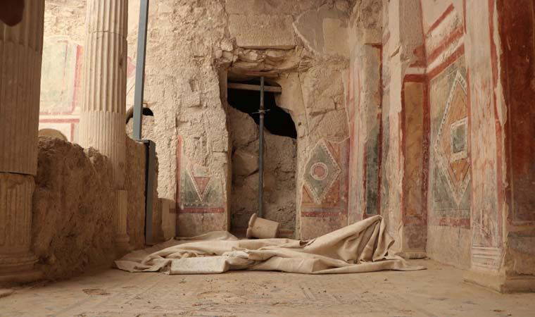 Kazı başkanı Prof. Dr. Kutalmış Görkay, 'Muzalar Evi'nde 16 metrelik toprak dolgunun kazılmasının ardından kaya odalara ulaşıldığını belirterek, "Tespit ettiğimiz ve çalışmaları bu yöne kaydırdığımız kaya odalarının üzerindeki 16 metrelik toprak dolguyu kazdık. Üzerindeki bu ağırlığı aldıktan sonra kaya odalarının içindeki kazılar için de çalışmalara başladık. İçindeki toprakların alındığı bu odada çalışmalar halen devam ediyor. Bu odaların korunması ve sağlamlaştırılması var. Oda içerisinde tavanlarda özellikle oldukça riskli çatlaklar yer alıyor. İçinde bulunduğumuz yıl sürecinde diğer kaya odasında da kazıları tamamlayacağız. Daha sonra koruma önlemlerini alarak enjeksiyonlarla veya çelik strüktürlerle oda güvenliğini sağlayarak bu alanları ziyaretlere açmayı düşünüyoruz" dedi.