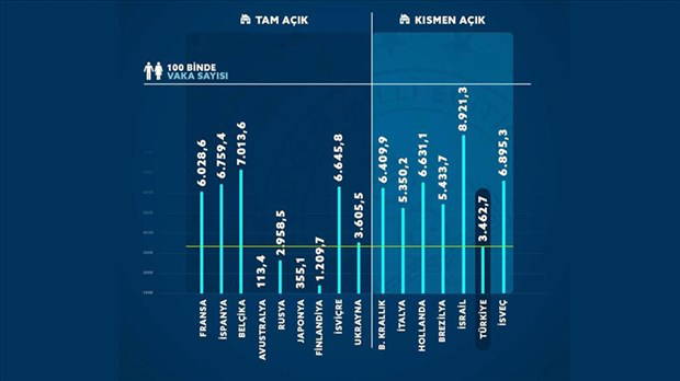 Milli Eğitim Bakanı Ziya Selçuk, salgın sürecinde ülkelerde her 100 bin kişide görülen vaka sayılarını ve okulların durumunu gösteren tablo paylaştı.
