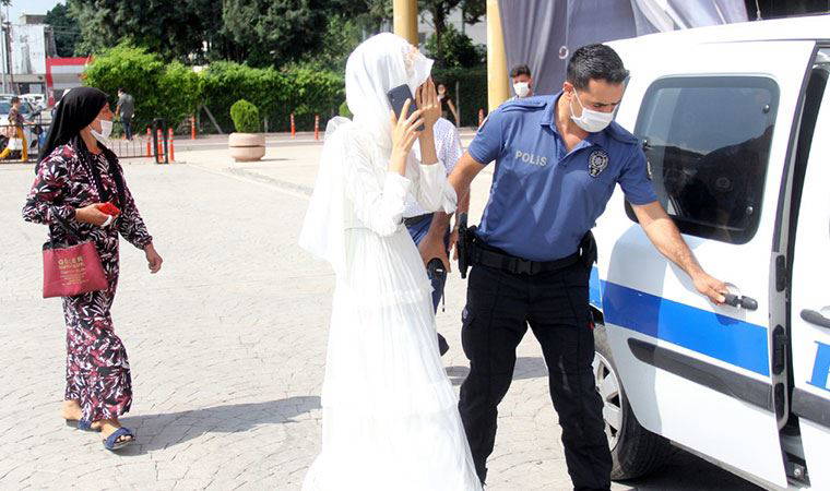 Bunun üzerine polis ekipleri nikah salonuna baskın düzenledi. Polis genç kadını salondan dışarı çıkartıp dinledi.