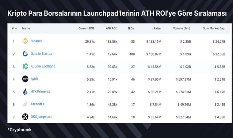 CryptoRank tarafından, mevcut yatırım geri dönüşü, tüm zamanların en yüksek yatırım geri dönüşü, ilk borsa arzı, toplam yatırım ve 24 saatlik işlem hacmine göre sıralanan merkezi borsa lansman platformları arasında ikinci sıraya yerleşen Gate Startup’ta listelenen projelerin yıllık getiri oranı (APY) ise %16,49 oldu.