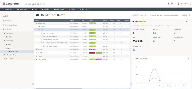 Zecurion, artan risklere karşı cevap olarak, yaygın çalışan değişiminin, olası kötü niyetli faaliyetlerin ve mesleki dolandırıcılık tehdidinin getirdiği zorluklarla başa çıkmak için en son teknoloji çözümü olan Zecurion Next Generation DLP 12 (Zecurion Yeni Nesil Veri Kaybı Önleme 12) ürününü sunuyor. Bu kapsamlı paket, veri kaybına karşı 360° koruma sağlayan diğer temel işlevlerin yanı sıra ayrıntılı çalışan profilleri, personel kontrol mekanizmaları, kullanıcı davranış analizi ve gelişmiş trafik kontrol modülü ile içeriden gelen tehditlere karşı bütünsel bir yaklaşım imkânı sağlıyor.