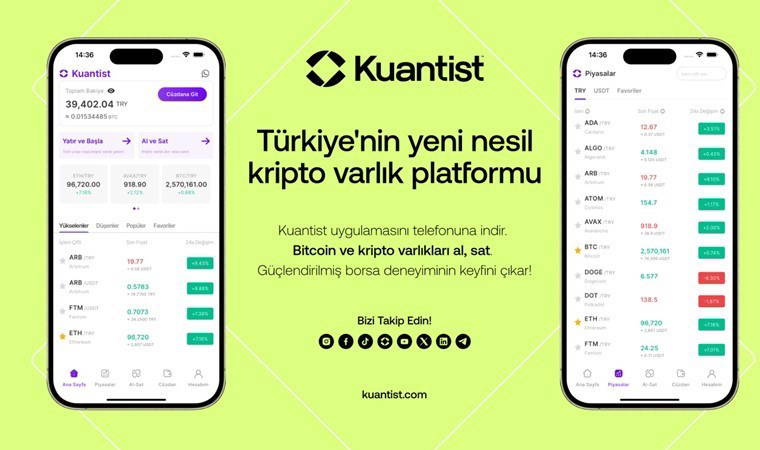 Yerli kripto varlık alım satım platformları, Sermaye Piyasası Kanunu Resmî Gazetede yayımlandıktan sonra Sermaye Piyasası Kurulu tarafından açıklanan ilke kararlar ışığında Türkiye’de günden güne belirginleşen kripto yasasına uyum için hazırlıklarına hız verdi. Sermaye piyasalarının deneyimli ismi, 2019-2021 yılları arasında Borsa İstanbul Türev Piyasalar Ürün Geliştirme Direktörlüğü görevini yürüten Serhat Yıldız tarafından kurulan Kuantist isimli yeni nesil kripto varlık platformu da bu kapsamda önemli adımlar attı. Organizasyon yapısını yasal düzenlemelerin gerektirdiği şekilde inşa eden Kuantist, son olarak kripto varlık alım satım mobil uygulamalarını tüm platformlarda devreye aldı.