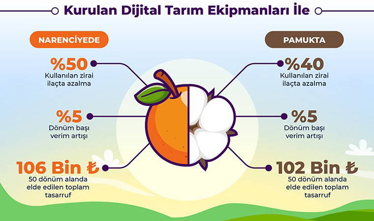 Kürkçüler köyünde kurulan Dijital Tarım İstasyonu, çiftçilere modern tarım tekniklerini uygulamalı olarak öğrenme fırsatı sundu. Kurulan istasyon sayesinde hava ve toprak verileri, iklim tahmini ve nem ölçümleri gibi kritik bilgiler analiz edilerek tarımsal verimlilik artırıldı. Bu teknolojik altyapı sayesinde narenciye ve pamuk üretiminde kullanılan zirai ilaç miktarında sırasıyla %50 ve %40 oranında azalma sağlanırken, dönüm başına %5’lik bir verim artışı elde edildi.