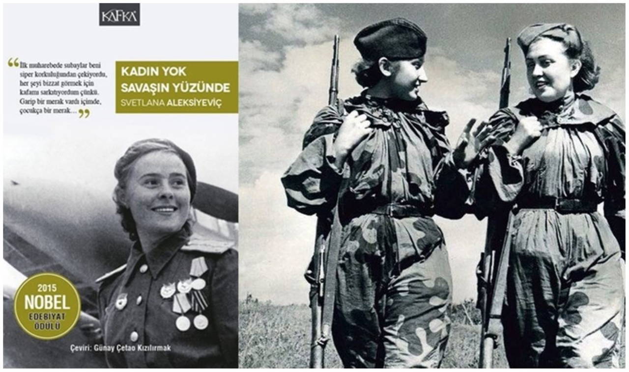 Kitabında kadın askerlerin onlarca hikâyesini paylaşıyor Aleksiyeviç. Annelerinden, ailelerinden koparak cepheye koşan gencecik kadınlar, kız çocuklarının yaşadıklarını okuduğunuzda hepsinde de büyük bir gurur, Zafer düşü, heyecan, travma, korkunun iç içe geçtiğini anlıyorsunuz. Cepheye gitmediklerini adeta koştuklarını anlıyorsunuz. Öylesine gönüllü, bile isteye, vatanları için, samimi, inanmış...