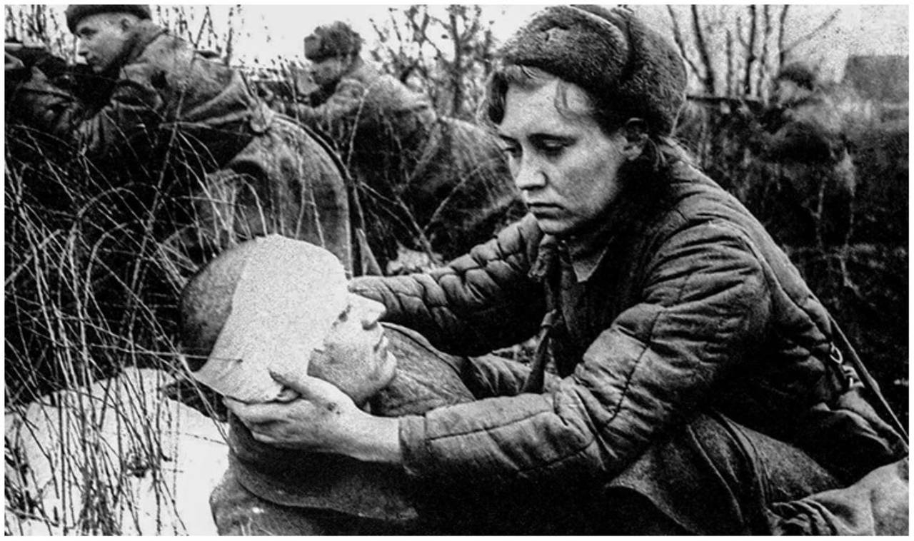 - Mariya Petrovna Smirnova (Kuharskaya), sıhhiyeci: “Kırım’da doğup büyüdüm… Savaşın başlarında, ilk günlerindeydik; radyodan çekilmekte olduğumuzu duydum… Koşa koşa askerlik şubesine gittim, ret cevabı aldım. Yirmi sekiz temmuzda çekilen birlikler bizim Slobodka’dan geçti, onlarla birlikte celpsiz halde cepheye gittim. İlk yaralı gördüğümde bayılmıştım. Sonra geçti. Bir askeri sürüklemek için kurşunların ortasına kendimi ilk attığımda öyle bir bağırıyordum ki çatışma gümbürtüsünü bastırmaya çalıştığım sanılabilirdi. Sonraları alıştım. On gün sonra yaralandım. Vücuduma saplanan mermi parçasını kendim çıkardım, yaramı kendim sardım… (...) Sırtımıza üniforma dayanmıyordu: Yenisini verirler, birkaç gün sonra kana bulanır. Sıcak çatışmadan çıkardıklarımın sayısı toplam dört yüz seksen birdir. Bir gazeteci saymıştı: Koca bir nişancı taburu ediyormuş… Kendimizin iki-üç katı ağırlığındaki erkekleri taşıyorduk. Üstelik yaralılar daha da ağır olur. Sadece kendisini değil, silahını, sırtındaki kaputu, çizmelerini de taşırsın. Yüklenirsin seksen kiloyu, götürürsün. Bir hücum boyunca böyle beş-altı sefer… Bu arada kendin kırk sekiz kilosundur, balerin kilosu. Şimdi inanamıyorum… Kendim de inanamıyorum…”