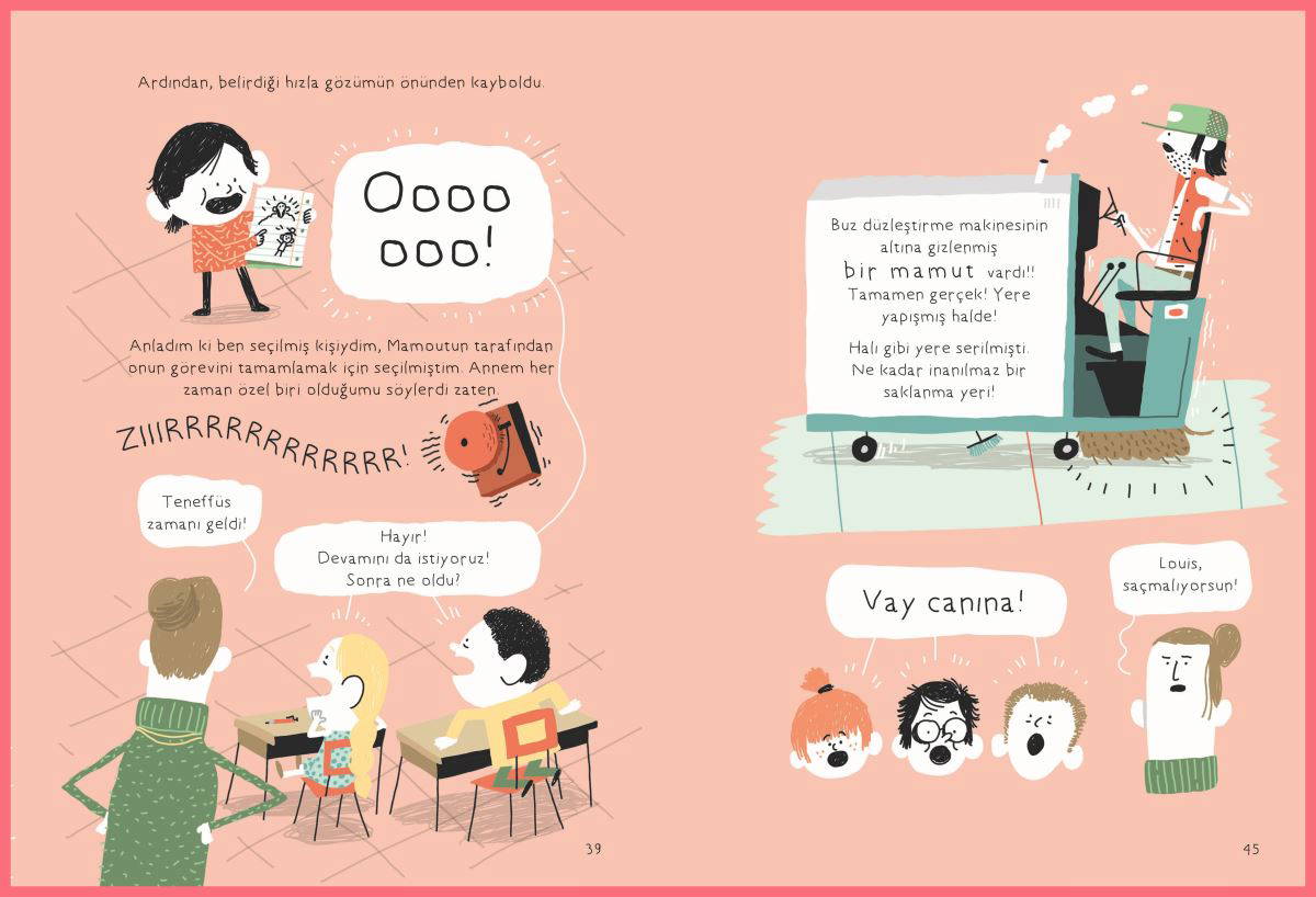 Sınıf arkadaşlarının mamutlar evcil değil itirazlarına umursamadan devam eden, hipotezden proteze oradan mayoneze geçebilen Louis’yi, süren dolmak üzere, konuyu toparla, zil çaldı diye defalarca uyaran öğretmeni bile durduraz. Hipotez-gizem, duvar resimleri-rock müzik derken her şeyi anlatır Louis.