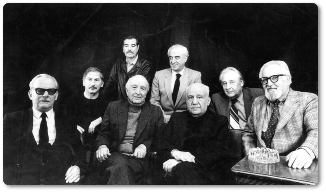7 Mayıs 1984 / (Önde soldan sağa) Melih Cevdet Anday, İlhan Selçuk, Hıfzı Veldet Velidedeoğlu, Nadir Nadi, Oktay Akbal, Mehmet Kemal.