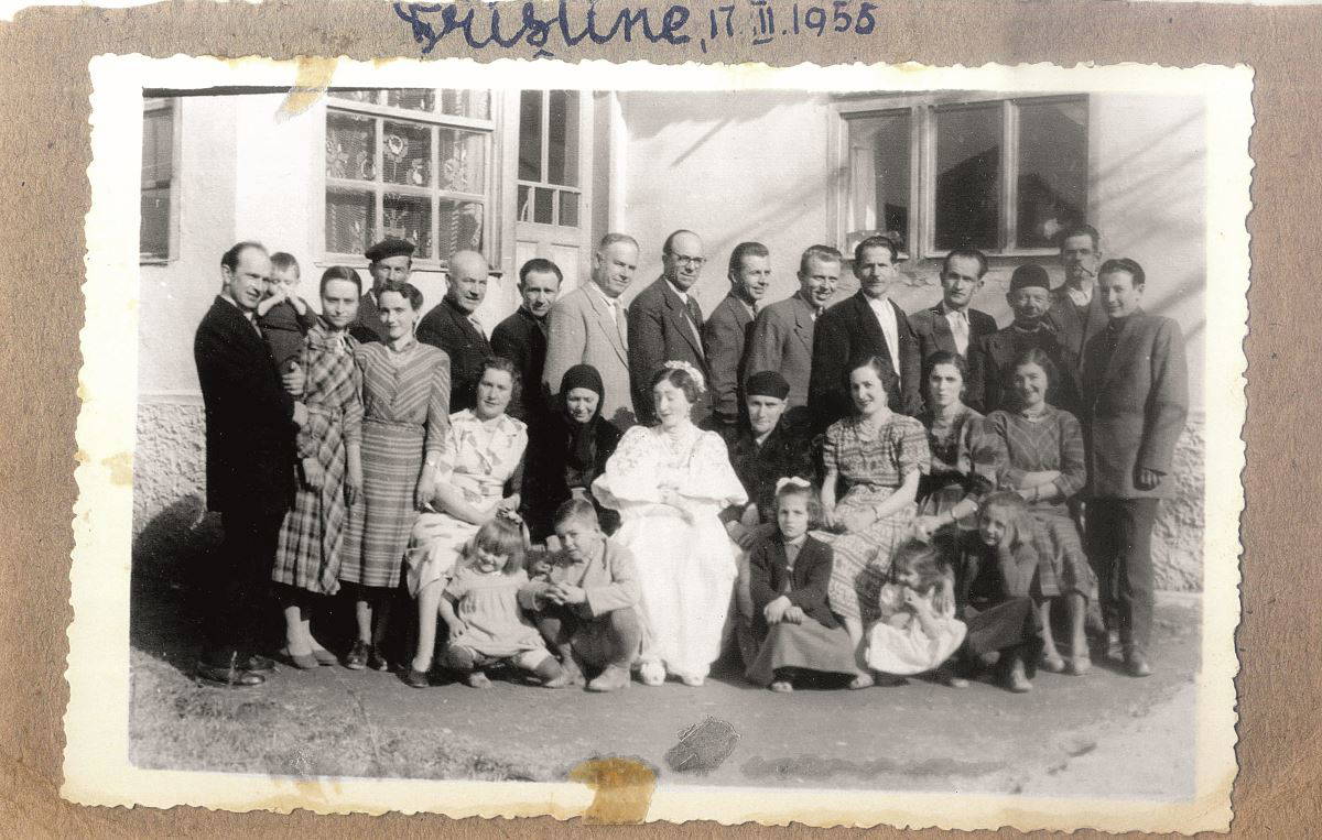 Benim tanıklığım anneannemin 2.erkek kardeşi Aziz Kurteş’in1953’te Priştine’ye gelişinden. Bizim evin önünde bahçede çekilen fotoğrafta görüldüğü üzere konuğa saygının gereği herkes çok şık giyimli. Kadınlar ipek şelvarlı. Konuğumuz Büyükada Anadolu kulübünde restoran yöneticisi. Anneannem Dedemle Ağabeyi arasında, ailenin gelebilen erkekleri çarprazlama sıralanmışlar. Elbette biz üç kardeş en önde ortaya kurulmuşuz. Şalvarlı güzel küçük halasının önünde..