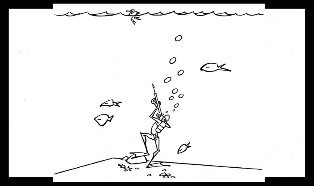 Bir de kitabın kapağına seçki yapılmış çizgilerinin denizin dibinden suyun üstündeki yüzen hayvanı vurmaya kalkışan avcının acıklı hali vardı değil mi?