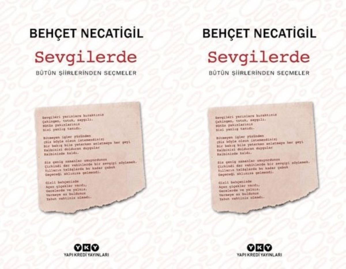 Behçet Necatigil’in 1935-1972 yılları arasında yayımladığı şiirlerinden hazırladığı bir ‘seçme şiirler’ kitabı Sevgilerde. Şairin 1935-39 yılları arasında dergilerde kalmış ilk şiirleriyle Kapalı Çarşı, Çevre, Evler, Eski Toprak, Arada, Dar Çağ, Yaz Dönemi, Divançe, İki Başına Yürümek, En/Cam ve Zebra kitaplarından seçilmiş şiirleri kapsıyor. İlk baskısı, şair hayattayken, 1976’da yapılan kitap, Doğan Hızlan’ın “Türk Şiirinin ‘Saklı Su’yu: Behçet Necatigil” yazısıyla açılıyor. Sevgilerde yıllar sonra, şairin elinden çıkan baskıya uygun biçimde, yeni bir düzenlemeyle ve yine Necatigil’in arşivinden hazırladığı bibliyografyayla birlikte okuruyla buluşuyor.