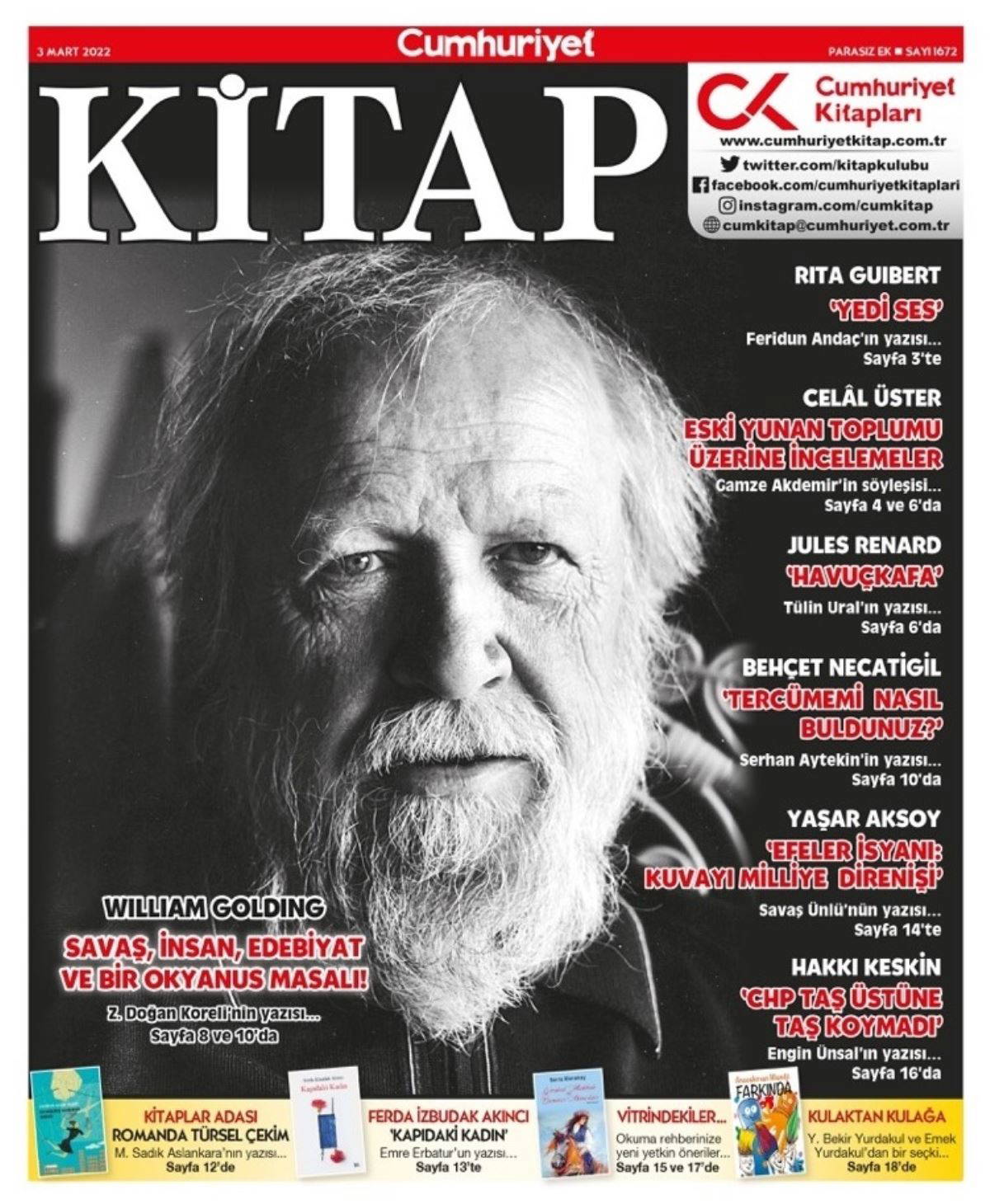 - Yapıtlarında I. ve II. Dünya Savaşlarının yarattığı kaosun insan psikolojisi üzerindeki etkisini yansıtan, savaşlarla insanlığın masumiyetini kaybettiğini, saf ruhların yitip gittiğini imleyen, okuyucuyu insan doğasının kötü ve acımasız taraflarıyla yüzleştiren, Türkiye İş Bankası Kültür Yayınları’nca yayımlanan Geçiş Ayinleri (Çeviren: Bülent Doğan), Yan Yana (Çeviren: Bülent Doğan) ve Aşağıdaki Yangın (Çeviren: Banu Tellioğlu) kitaplarından oluşan, alegori ile gerçekçi roman arasında bağ kurduğu Deniz Üçlemesi ile Nobel Edebiyat Ödüllü yazar William Golding kapağımızda. Z. Doğan Koreli’nin yazısı…