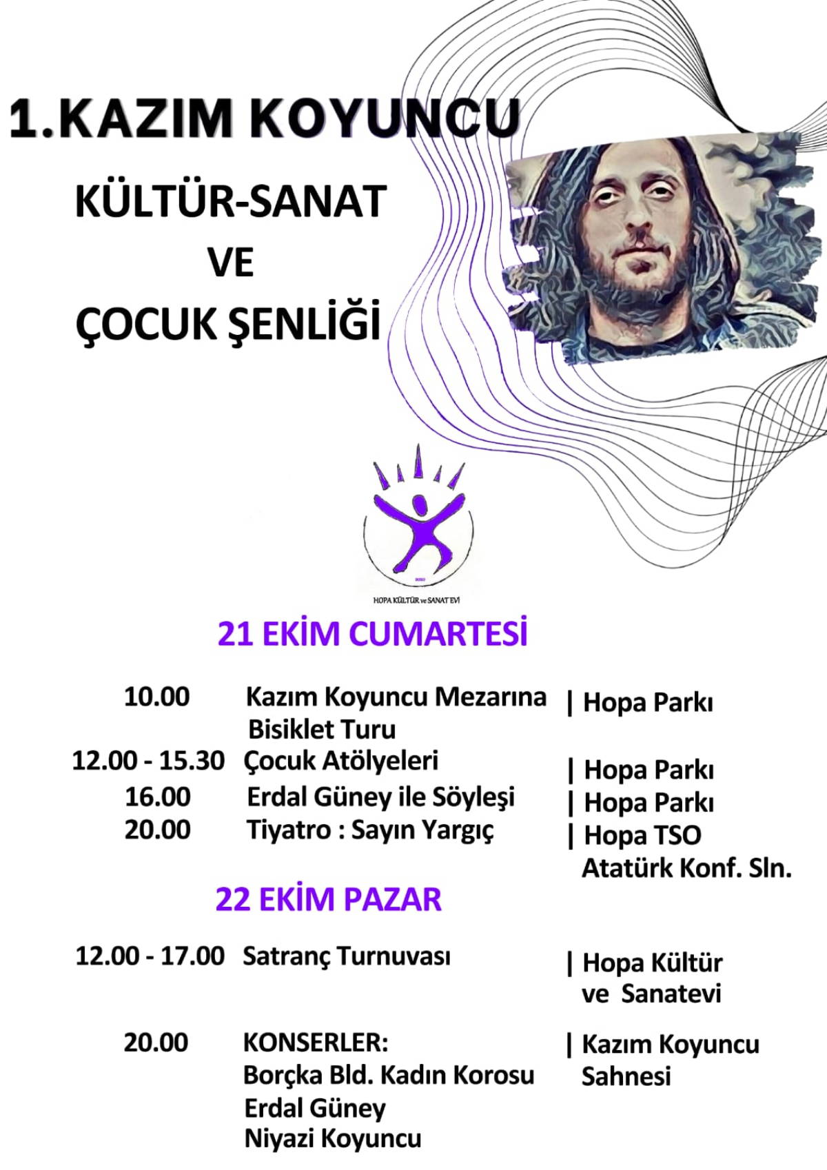 Hopa Kültür ve Sanatevi Kazım Koyuncu Kültür, Sanat ve Çocuk Şenliği, 21-22 Ekim tarihlerinde Artvin'in Hopa ilçesinde yapılacak.