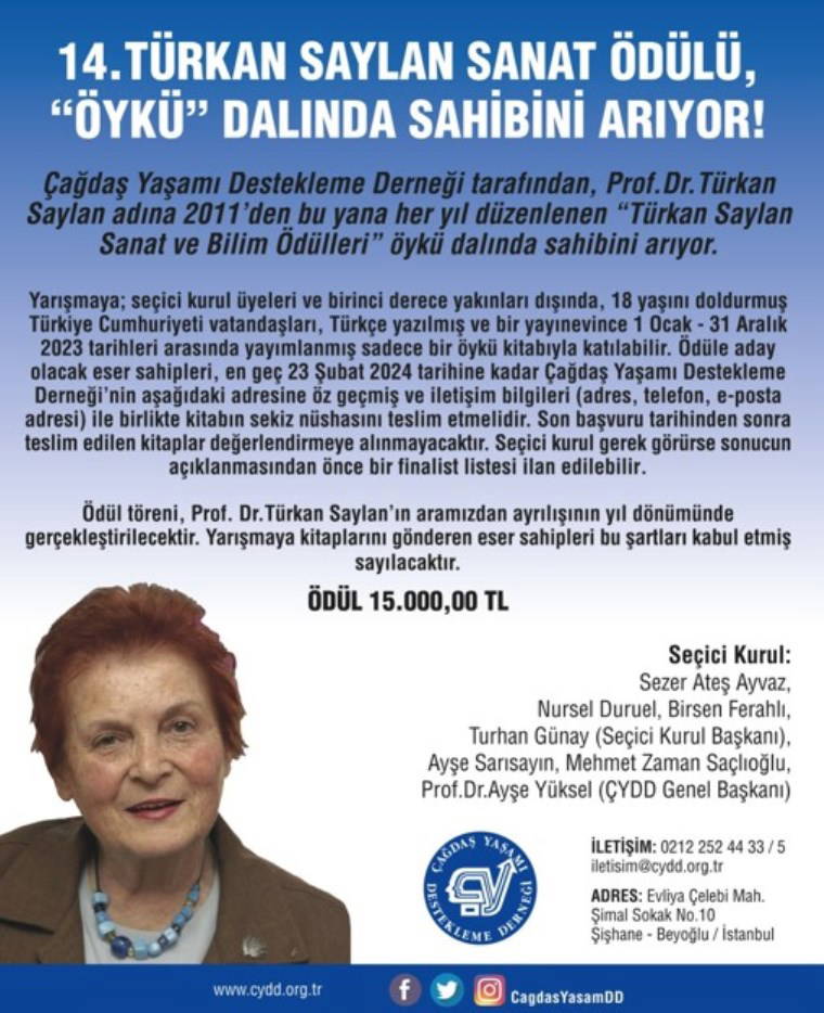 Ödül töreni, Prof. Dr. Türkan Saylan’ın aramızdan ayrılışının yıl dönümünde gerçekleştirilecektir. Yarışmaya kitaplarını gönderen eser sahipleri bu şartları kabul etmiş sayılacaktır.