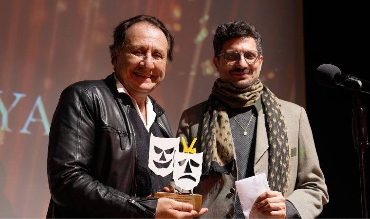 “Mercaniye Çok Yaşa” oyununun yazarı Ahmet Sami Özbudak’a En İyi Oyun Yazarı ödülünü Özgür Ozan verirken, aynı oyunla En İyi Oyun Yönetmeni seçilen Emrah Eren ise ödülünü Müjdat Gezen’in elinden aldı.